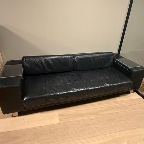 3 stk IKEA Vallentuna sovesofa moduler i imitert svart skinn selges. Alle pent brukt. Ryggstøtter kan enkelt taes av. Må hentes. Selges enkle eller sammen. Enten 1200kr for en modul eller 3000 for alle. Kommer med puter.