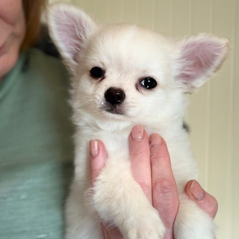 Nydelig creme / hvit korthårs Chihuahua gutt med papirer