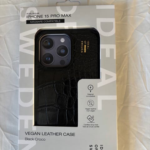 Ny deksel for IPhone 16 pro black croco fra Ideal of Sweden, ikke brukt, ny pris 349kr. Gratis 2 dekselen mirror case (silver og panther) brukt.
