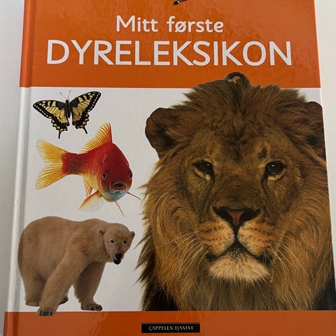 Spektrum Mitt første leksikon Dyrene barnebok. Illustrert faktabok om dyr tilpasset barn, med bilder og korte tekster som presenterer ulike dyrearter. Innbundet utgave med fargerike illustrasjoner på for- og bakside.