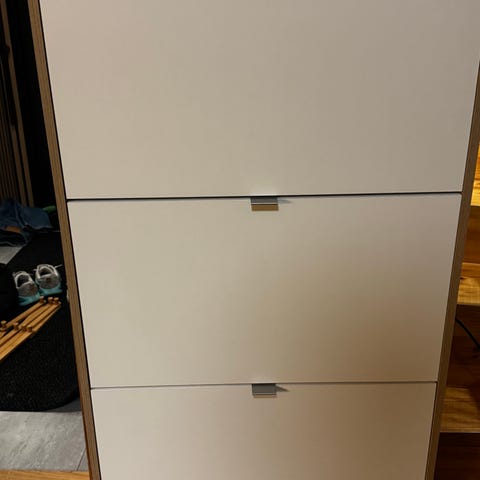 Skoskap med 2 rom, brunsvart, 49x28x93 cm. Ikea koster 550 kr.