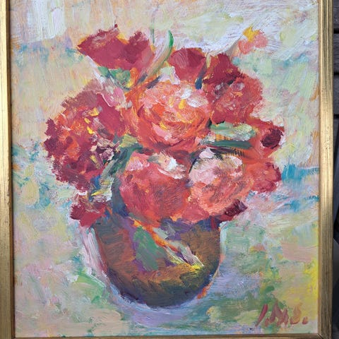 Maleriet er i perfekt stand. Rammen er nyere enn maleri . Maleriet kan ses på Eidsvoll, eller jeg kan sende det i posten for kr 129,-, alternativt kan jeg ta det med til sentralt sted på Østlandet hvis du bor der. Oppgitt pris er prisantydning.