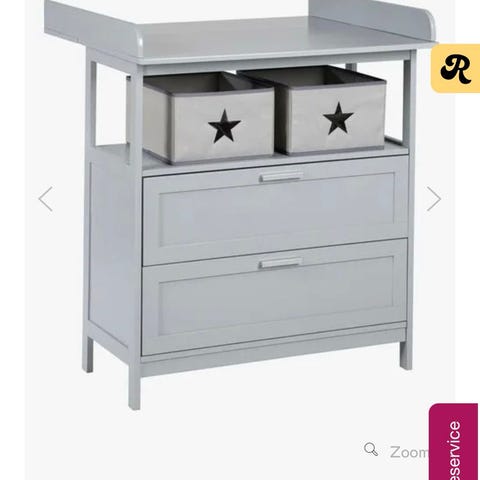 Babybay stellebord med integrert badekar. Stellebordet har polstret stellematte på toppen og badekar skjult under lokket. Praktisk løsning for stell og bading av baby på samme møbel. Egnet for bruk på bad eller barnerom, med plass til oppbevaring i skuffer. Nyprisen 2500