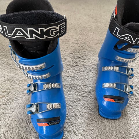 Lange alpinstøvler i størrelse 22–22,5 MP. Støvlene har ytre skall i blå plast med tre justerbare spenner. Innerstøvlene er uttakbare og polstrede for økt komfort og varme. Passer til alpint bruk for barn eller personer med tilsvarende fotlengde. Egner seg til bruk med vanlige alpinbindinger.