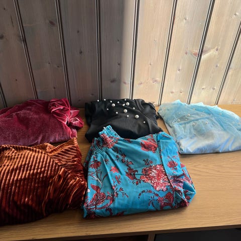 Selges helst samlet, men kan også dele opp pr plagg. Samlet for hele pakken 600,- evt 100 pr plagg.