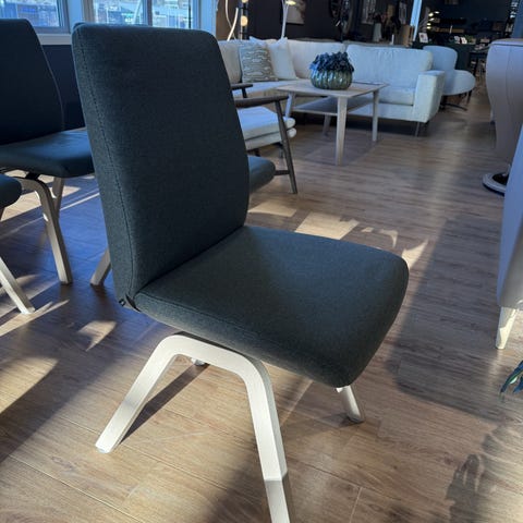 Stressless® Chilli spisestol har rene linjer og et elegant design. Stolen har også de særegne og verdenskjente komfortfunksjonene til Stressless® Dining. Stressless® Chilli spisestol er laget for å ta vare på de gode øyeblikkene og la deg nyte god mat, drikke og lange samtaler og samtidig lar deg sitte godt - lenge! Spisestolen har derfor integrert fleksibilitet i setet, kombinert med at rygg og sete følger dine bevegelser, gir deg muligheten til å endre sittestillingen i løpet av måltidet. Dette er en spisestol med en komfort som bare må prøves. Denne stolen leveres med høy rygg trukket i Dahlia grey tekstil, som har myk og behagelig overflate, sammen med et hvitlasert understell med lett svikt og vipp. Stressless® Chilli er en spisestol i perfekt balanse, her får du fremragende design med en sitteopplevelse som er helt unik!