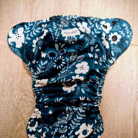12 innerbleier og 3 ytterbleier fra Esembly i str 1 (4-8 kg). Alle er «vasket inn», men kun to av innerbleiene og en ytterbleie er prøvd en gang, fikk ikke startet før de ble for små for jenta vår. Ingen flekker, som nye alle sammen.