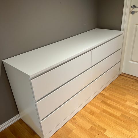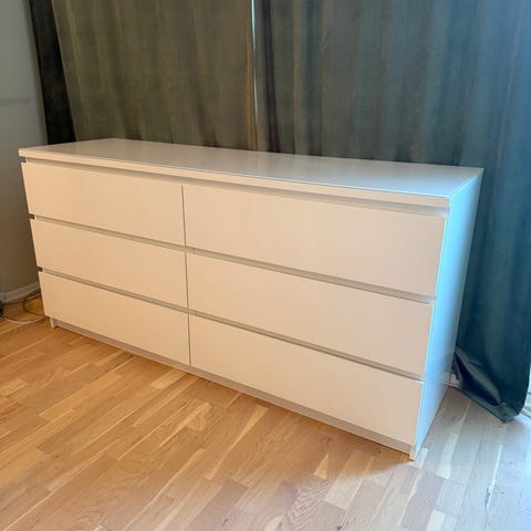 Godt men pent brukt dobbel kommode fra IKEA selges . Stått i ro på samme sted, ikke blitt flyttet. Følger med glassplate på toppen som beskyttelse. Et lite hakk på den ene skuffefronten og litt gulnet.