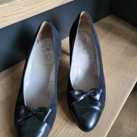 Mørkeblå pumps med mønster. Ekte skinn. Størrelse 5 1/2