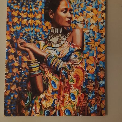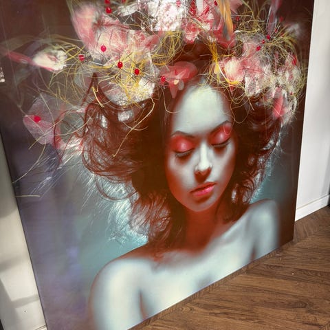Bilde i glass. Bredde 120 cm, dybde 0,4 cm og høyde 80 cm.