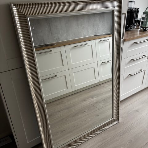 Noen små brukstegn på rammen (typisk små merker i glitteret – ser nesten ikke ut i normal bruk). Speiler fortsatt 100 % perfekt.