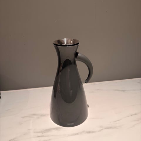 Eva Solo termokanne i rustfritt stål med svart hank og topp.