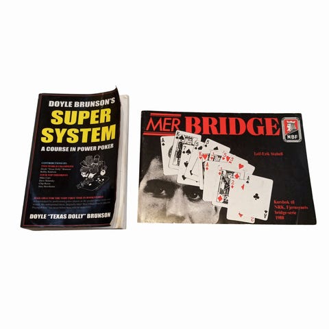 Følger med to pokerbøker på engelsk:
