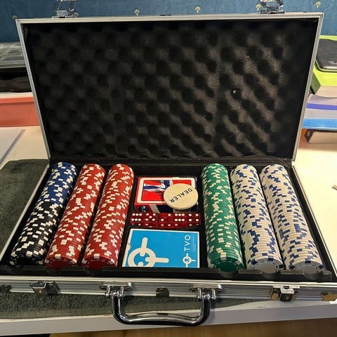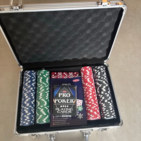 Pokersett i metallkoffert med sjetonger uten kortstokk