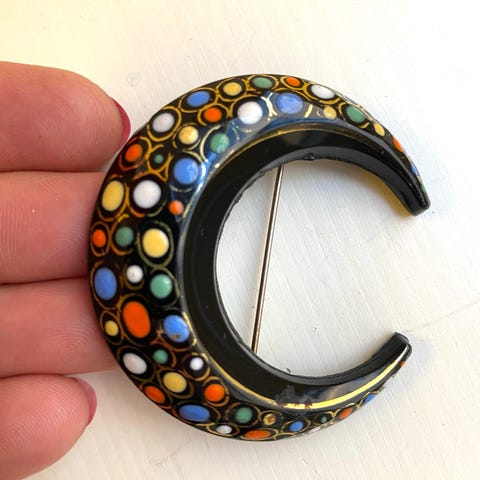 Vintage italiensk mikromosaikk brosje i messing. Hestesko.
