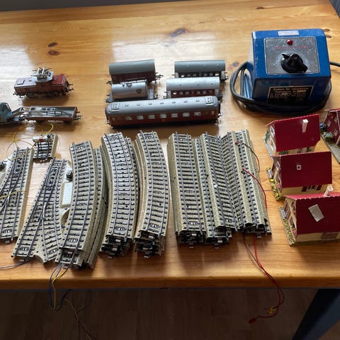 Diverse N Scale jernbane med lokomotiver, skinner, bygninger og alt i mellom!