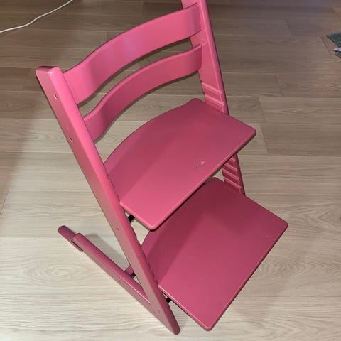 Pent brukt Tripp-trapp-stol fra Stokke i hvitpigmentert tre. Sparsomt med bruksmerker, i meget god stand. Kjøpt ny, og brukt til ett barn.