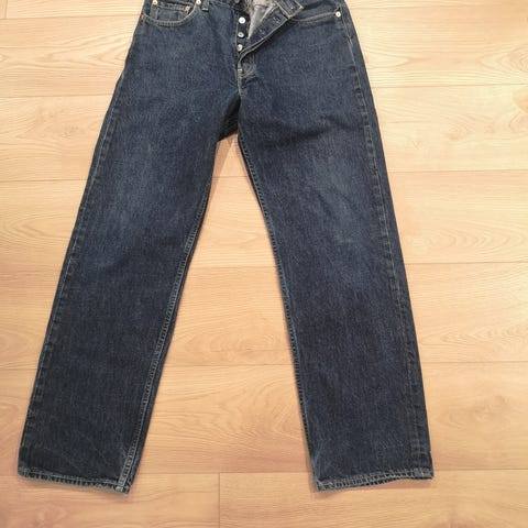 Den er laget i tykk og slitesterk denim slik de produserte før i tiden. Buksen er vintage krympet, så se mål på bildene for korrekt passform. Den er i veldig bra vintage tilstand, uten lukt, merker eller skader, og viser kun tegn til lite bruk. Patchen bak er i perfekt kondisjon sammenlignet med det man vanligvis finner ute i markedet.