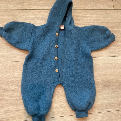 Deilig mosegrønn ulldress med hette str. 80/86. Mye bruk igjen.