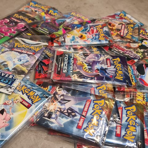 Det er tre så og si fulle boosterbokser fra Vivid Voltage, en XY Evolutions. I tillegg er det noe Shining Fates og Hidden Fates.