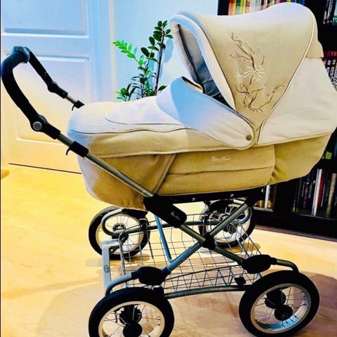 Nydelig Silver Cross vogn selges grunnet plassmangel. Står inne i stua nå, og da blir det litt trangt. Denne vogna har stått på utstilling i en butikk, jeg har trillet den noen ganger så jeg vet at den er skjønn og stødig å trille, sommer som vinter. Fått mye skryt av den, så nå unner jeg en ny verdensborger denne luksusen det er å få ligge i denne herlige vogna. Følgerog med Voksipose og regntrekk.