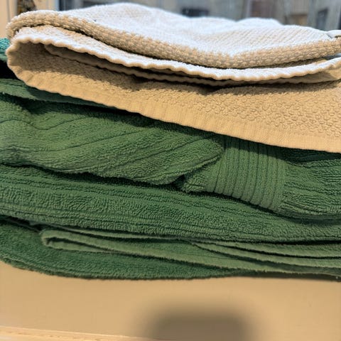 Used laundry basket. No holes or tears, just a bit dusty with slight water stains on the bottom.
