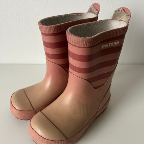 Tretorn gummistøvler for barn i størrelse 26. Unisex-modell i marineblå med hvite striper og lys såle. Laget i vanntett materiale med tekstilfôr på innsiden for økt komfort. Passer til bruk i regnvær, på lekeplassen og på tur i vått terreng.