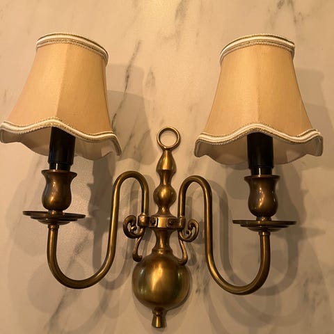 Eldre vegglampe med eldre støpsel. Ka byttes ut dersom nødvendig. I god stand.