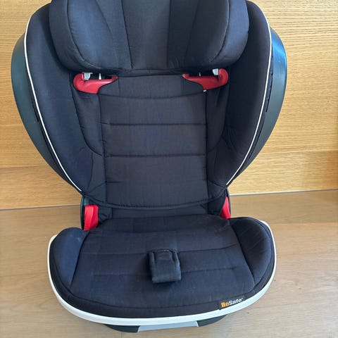Setet er et beltestol-barnesete beregnet for større barn som sikres med bilens trepunktsbelte. Det har høy rygg med sidebeskyttelse og justerbar hodestøtte. Trekket er i mørk/svart tekstil. Setet monteres forovervendt på bilens sete.