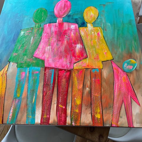 «Pink» er et stort maleri som måler hele 100*100 cm og dette har dyp rammekant, det har også oppheng på baksiden slik at det henger pent på veggen. Sparsommelige farger i dette med mye rosa, det er veldig fint i virkeligheten kommer ikke helt frem på bildene. Holder til i Halden hvor det må hentes. Håper du liker det😊