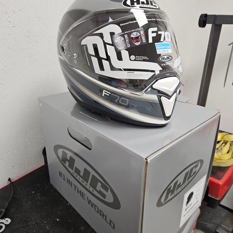 Lett og godt støyisolert Premiumhjelm fra HJC RPHA 70. str. M /57-58cm i matt svart. Kun 1400g. (Lettere enn etterfølgeren) Søk på tester, så ser du at denne er i toppsjiktet. Selges med klart visir og montert PinLock. Nedfellbar integrert solskjerm. Et lite merke vises såvidt på baksiden, som det fremgår av bildene. Selges med originaleske.