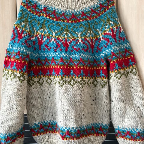 Hjemmestrikket Alasuq ullgenser selges. Strikket i Viking hobbygarn.