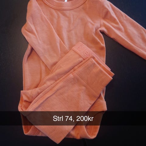 - blå stilongs/bukse: str 70. 100% ull. Den er helt ny, men har dessverre fått et bitte liten hull (se bilde).