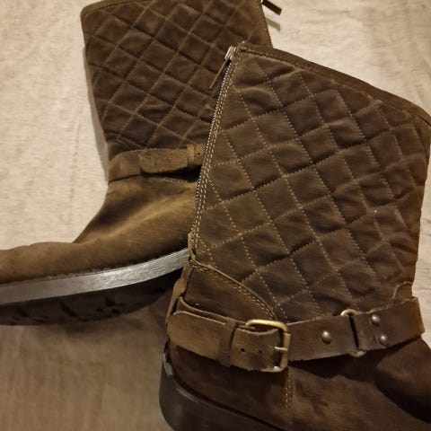 Støvlettene ble kjøpt for mange år siden, og er nesten ikke brukt. Stått lagret i et mørkt skap.