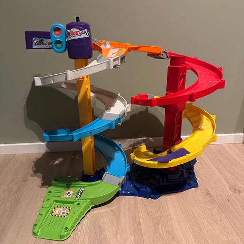 Rescue Wheels Super Loop Tower HQ! Tårnet er over 100 cm høyt og kommer med et kommandosenter, en løkke som rampe og plass til å parkere 6 kjøretøy.
