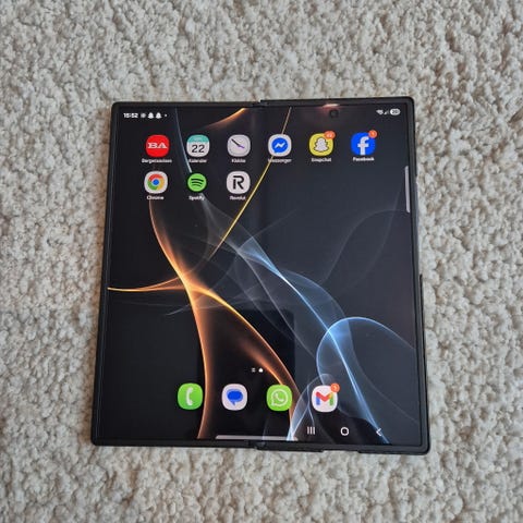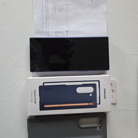 Samsung Galaxy Z-serie mobiltelefon med 256 GB internminne. Modellen tilhører Samsungs brettbare Galaxy Z-serie (Flip/Fold), med stor skjerm som kan brettes sammen for mer kompakt format. Enheten har flere kameraer på baksiden og leveres i originalemballasje slik det fremgår av bildene. Egnet for bruk med apper, surfing, foto og video, samt daglig kommunikasjon. Detaljer som eksakt Z-modell, skjermstørrelse og farge er ikke spesifisert utover det som kan sees på bildene.