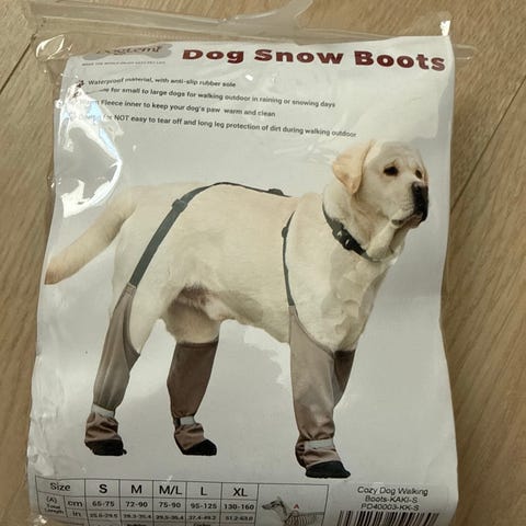 Kjøpte de 12.02 2026 til Whippet, men det skulle vise seg å ikke være riktig passfom for hund med tynne bein. Trengte den str pga høyden over skuldrene, men bredden på selve sokken ble alt for vid.