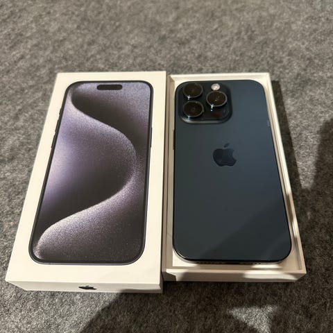 Pent brukt Apple iPhone 15 Pro smarttelefon med 128 GB lagringsplass.
