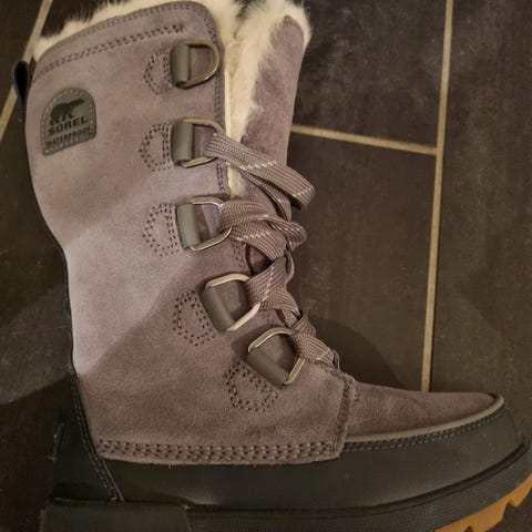 Helt supre vintersko som tåler både slaps og kulde.vi har hatt de i en annen str. Men disse ble for små. Det står 39 på de men jeg vil si de er mere 36. Ny pris ca 1700