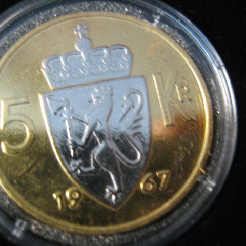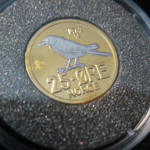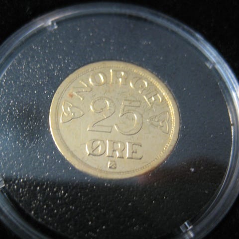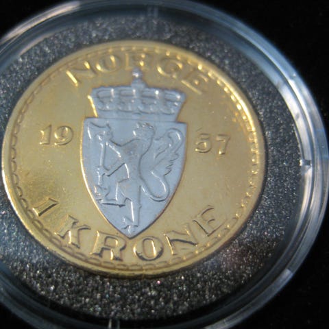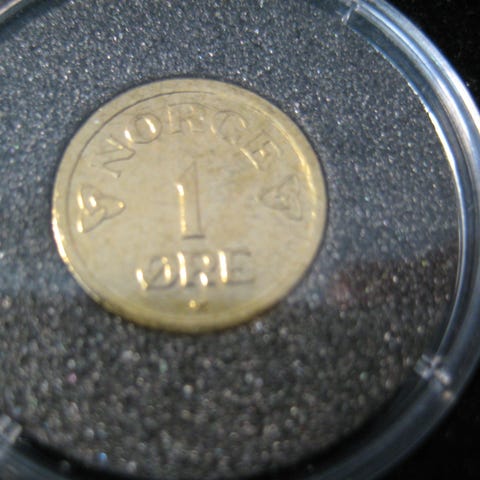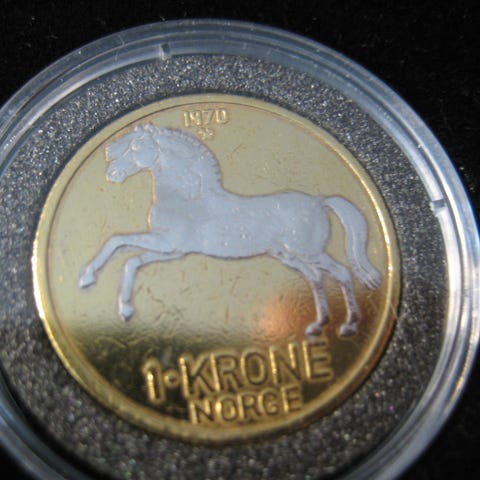 1 øre 1972 belagt med 24 karat gull og platina selges kr 100.-+porto
