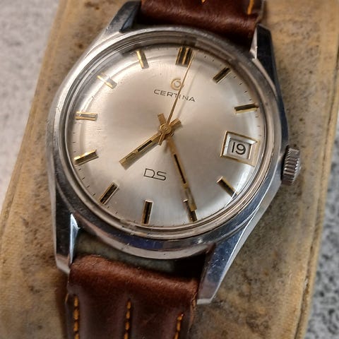 Pen vintage Certina DS Automatic fra 60-tallet, med det robuste Certina 25-651M urverket. Kronen er original Certina. Ny skinnreim.
