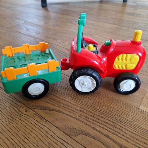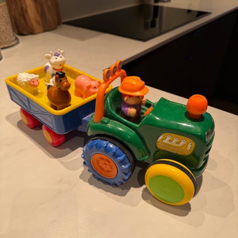 Kiddieland Musikalsk Traktor med henger og 5 dyr. Pent brukt av 1 barn.