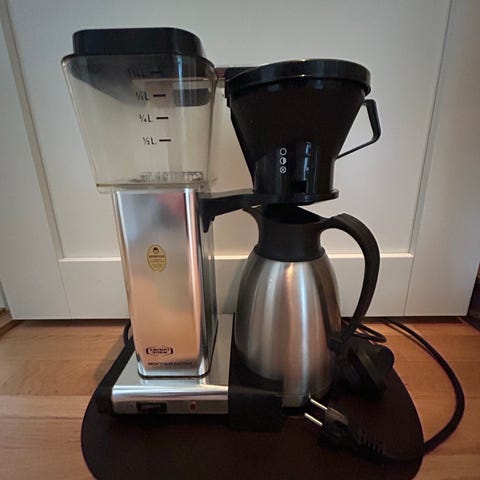 Moccamaster kaffetrakter med vannbeholder og glasskanne