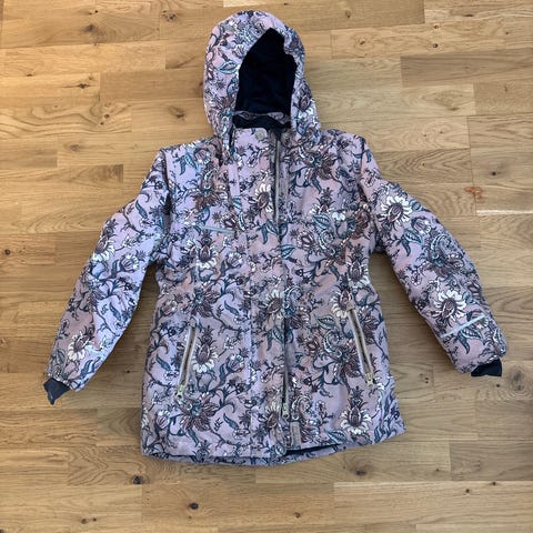 Name it jakke for jente i størrelse 134. Jakken er laget i polyester og har et flerfarget blomstermønster på mørk bunn. Den har hette, lange ermer og lengre passform som dekker godt nedover. Egnet som ytterjakke i overgangssesonger eller milde dager. Materiale: 100 % polyester (basert på merkelapp/oppgitt materiale).
