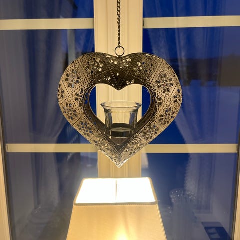 Hjerte formet t-lyse stake til å henge i vinduet