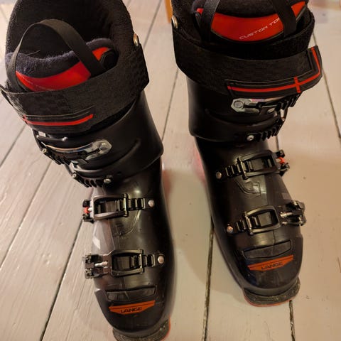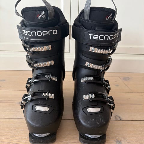 Tecnopro 60 alpinstøvler i størrelse EU 41 (UK 7,5 / US 8). Støvlene er svarte med røde detaljer og har flere justerbare spenner foran for god tilpasning rundt fot og legg. Innerstøvelen er polstret for komfort og støtte. Passer til bruk i alpinbakke med vanlige alpinbindinger.