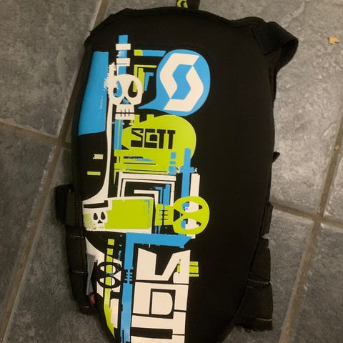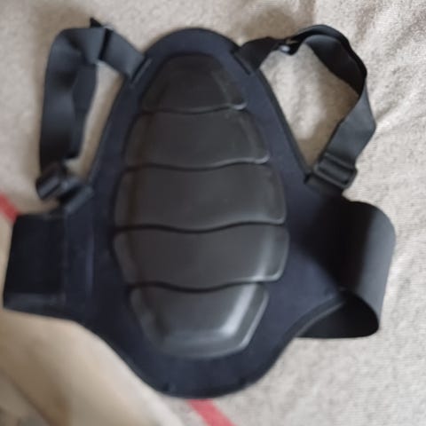 Ryggbeskytter til si, sykkel og brett. Belte rundt livet og remmer over skuldre og bryst.