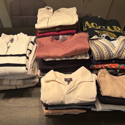 Klærne er pent brukt og i god stand. Noen plagg kan trenge en enkel stryk.