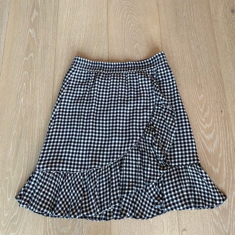 Rutete skjørt i merket Madewell. Strikk i midjen og kappe nederst.
