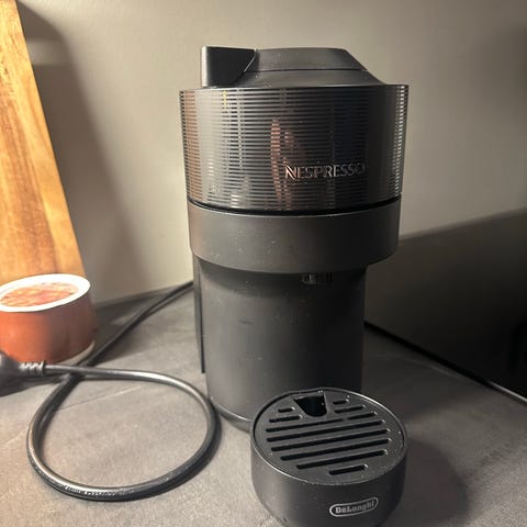 Maskinen er beregnet for bruk med Nespresso-kapsler og har avtakbart dryppbrett.